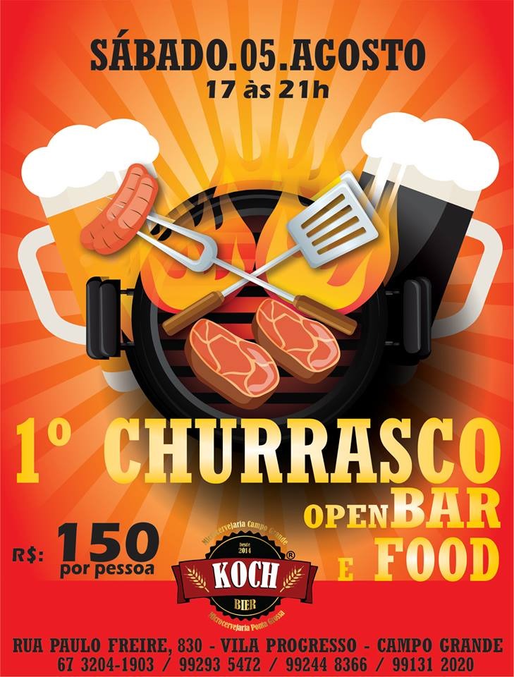 1º Churrasco da Koch Bier open bar e food na distribuidora da fábrica em Campo Grande – MS a partir das 17 às 21h!!!