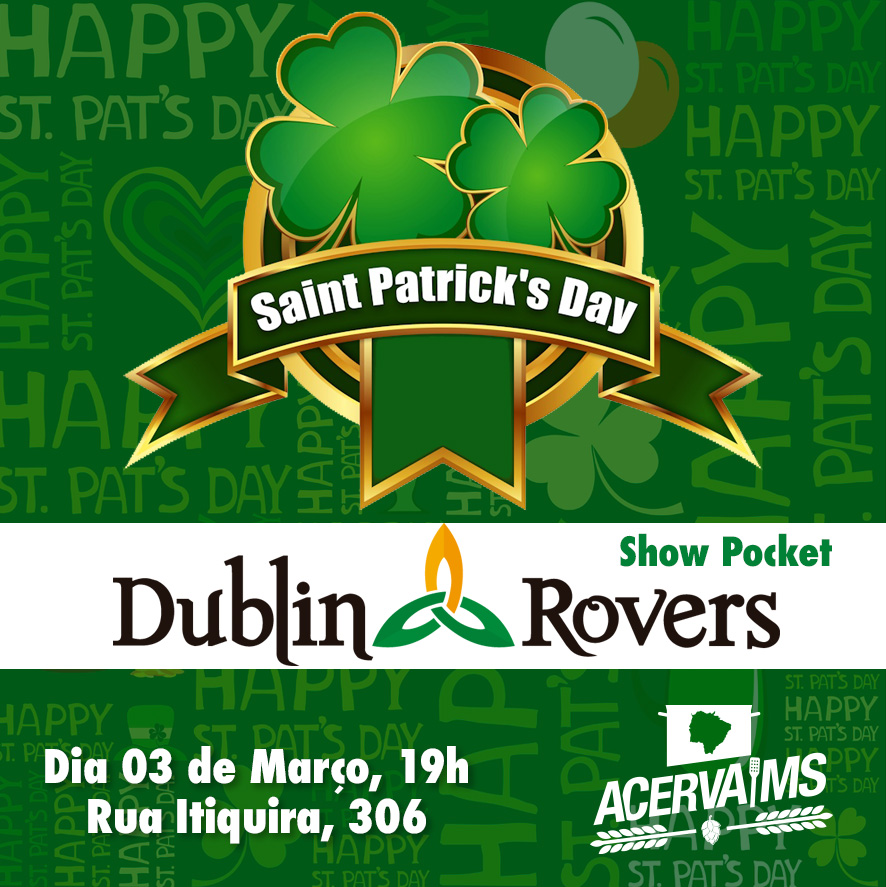 Muita Irish Red Ale/Irish Dry Stout e caldos, com a animação da Banda Dublin Rovers.